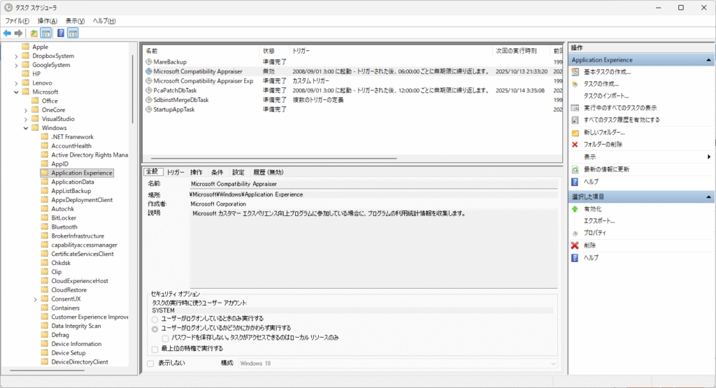 あと、WinSATも止めた。タスク スケジューラーから。